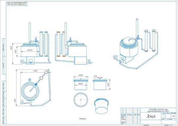 Оборудование специально разработано для переработки шин карьерных самосвалов, погрузчиков и другой тяжелой техники (диаметр до 1,5 метров). Компактные размеры, показанные на эскизе, позволяют легко разместить и запустить установку прямо в карьере.