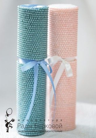 Приглашения в тубусах из красного бархата