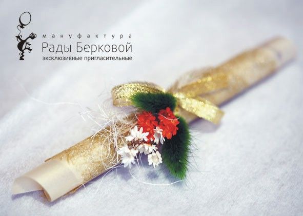 Золотой свиток в красном бархатном тубусе - пригласительные на юбилей, день рождения или красную свадьбу