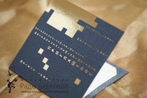 ВИП-приглашения из темно-синего натурального бархата. Пригласительные разработаны специально для Ночной свадьбы.